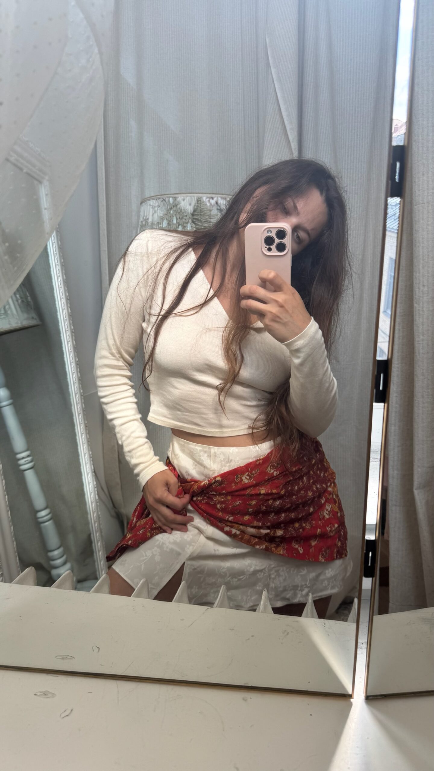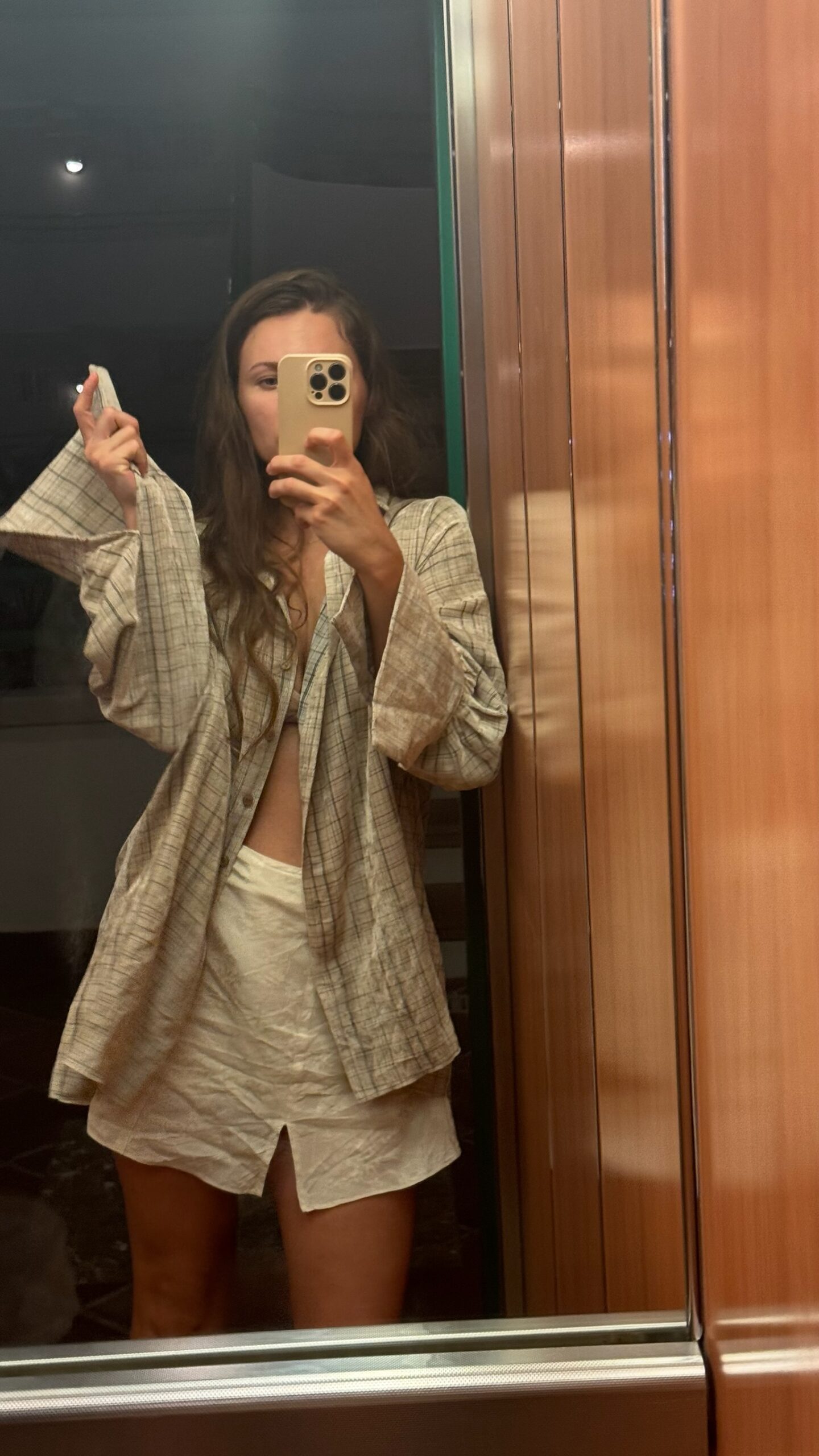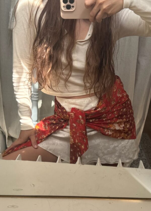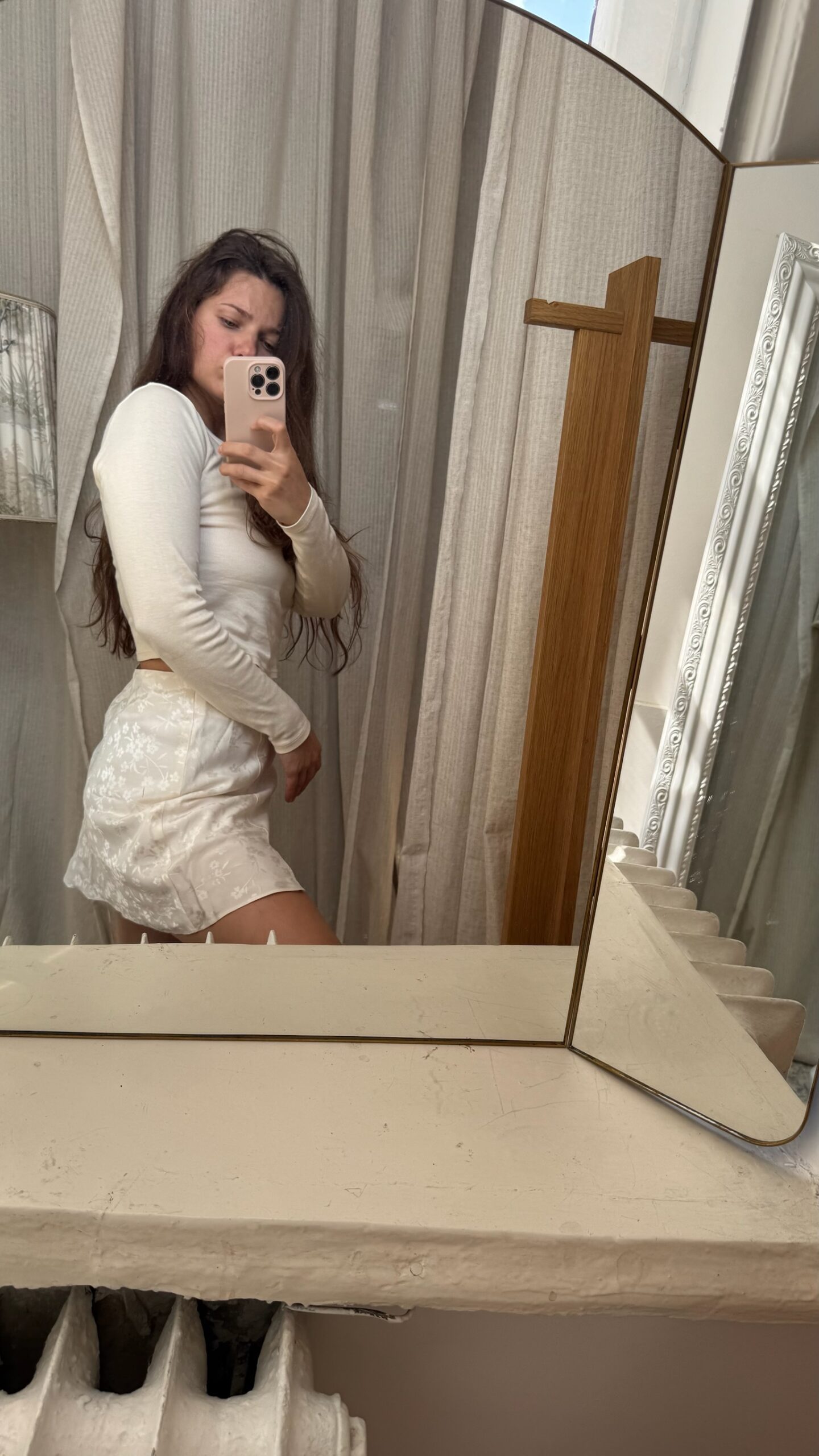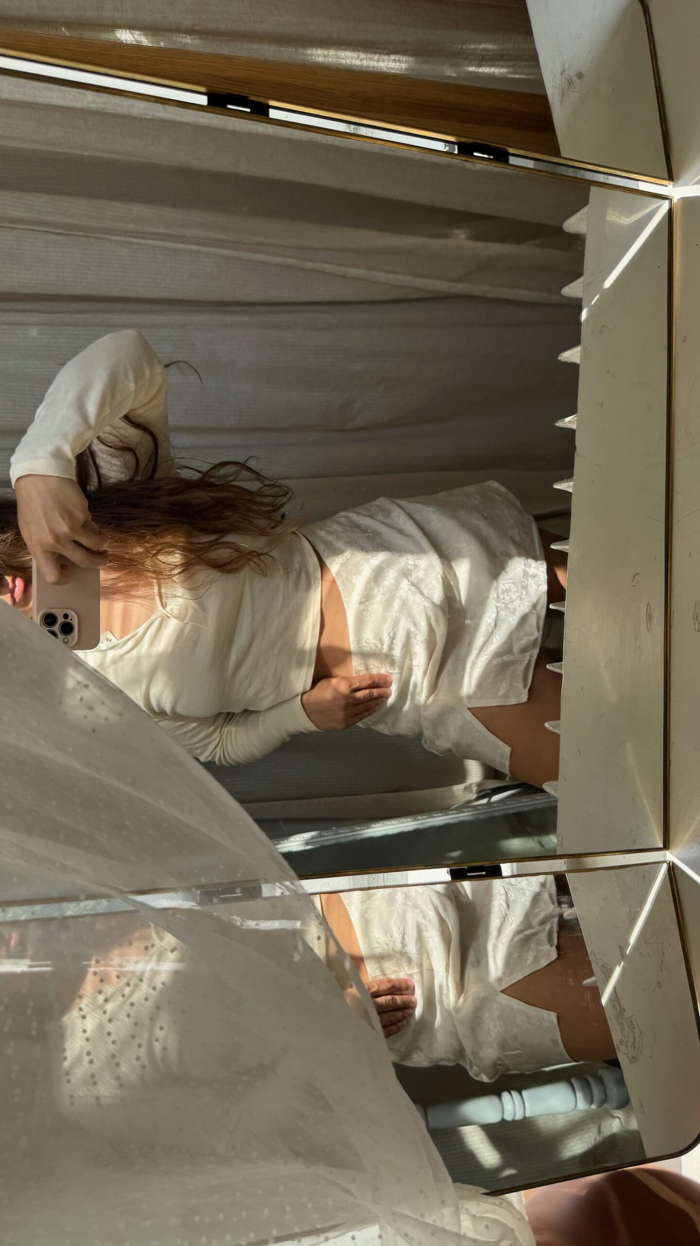 Paprastas, bet be galo žavus ir neįtikėtinai mielas. Šis švelniai perlamutrinio žakardo audinio sijonas lyg audinyje nutapyta rytinė šviesa – švelnus, švytintis ir tyliai užburiantis. Įsivaizduok save ilsintis po palme ar vaikščiojant saulės nušviestomis senamiesčio gatvėmis, prikaustant žvilgsnius kiekviename žingsnyje.