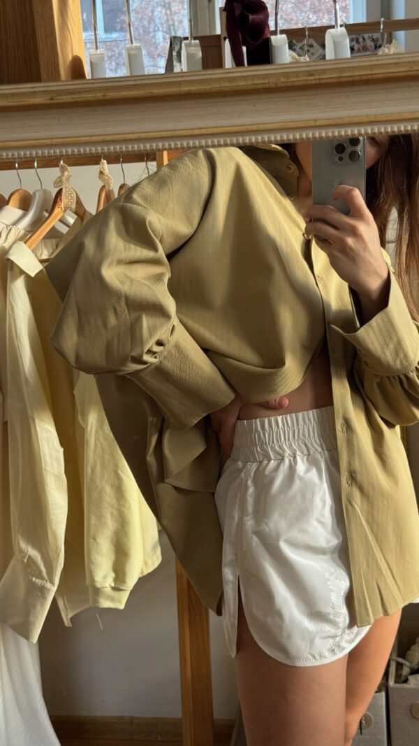 Lengvi, kvėpuojantys ir nepaprastai universalūs, jie puikiai dera su marškiniais, minkštais megztiniais, laisvomis palaidinėmis ar jaukiais laisvalaikio deriniais. Klasikinė elastinė juosmens juosta ir laisvas siluetas sukuria tobulą patogumo ir prabangos balansą. Šortai, įrodantys paprastą tiesą: net kasdieniai drabužiai gali tapti tyliu prabangos gestu.
