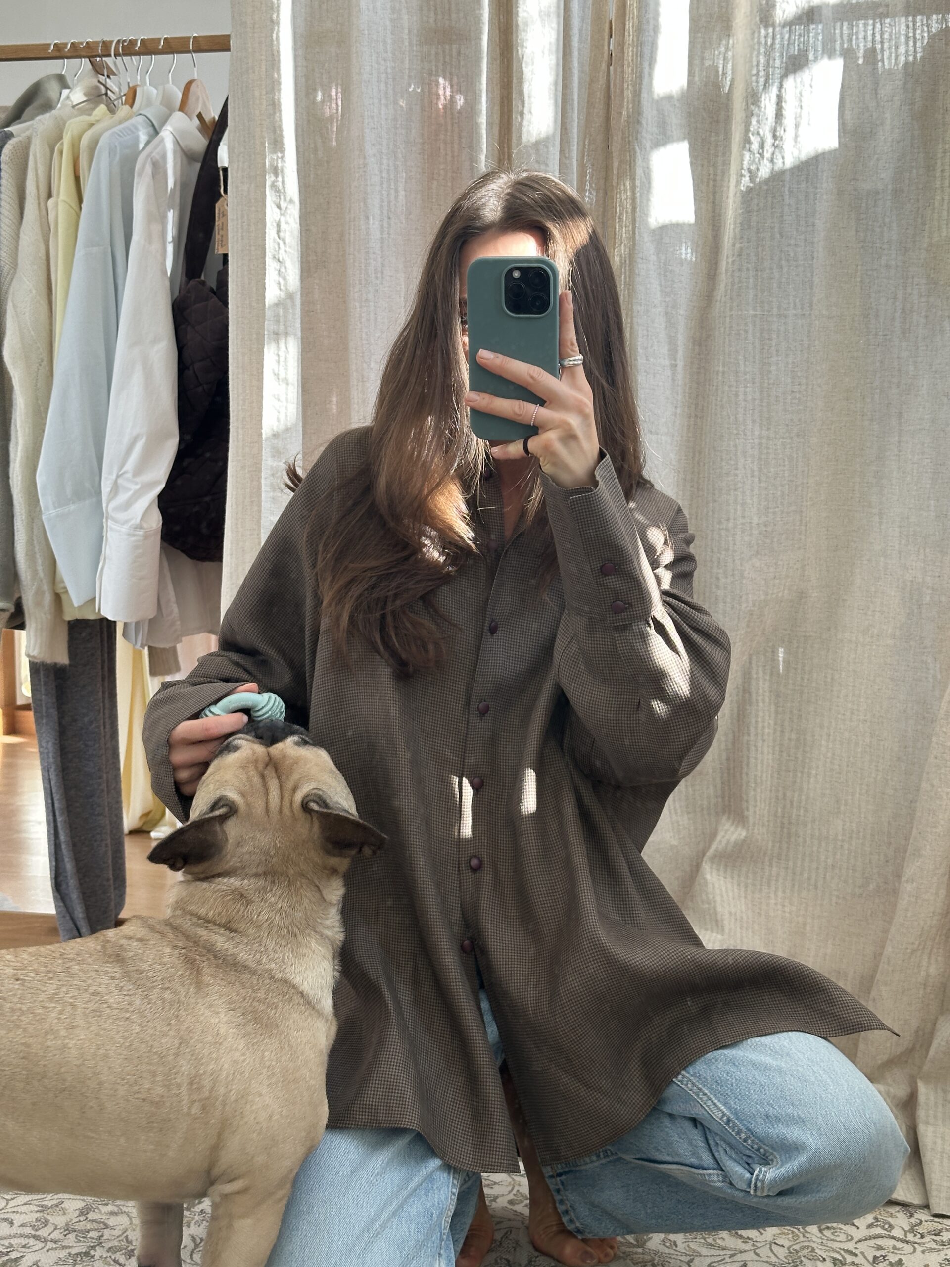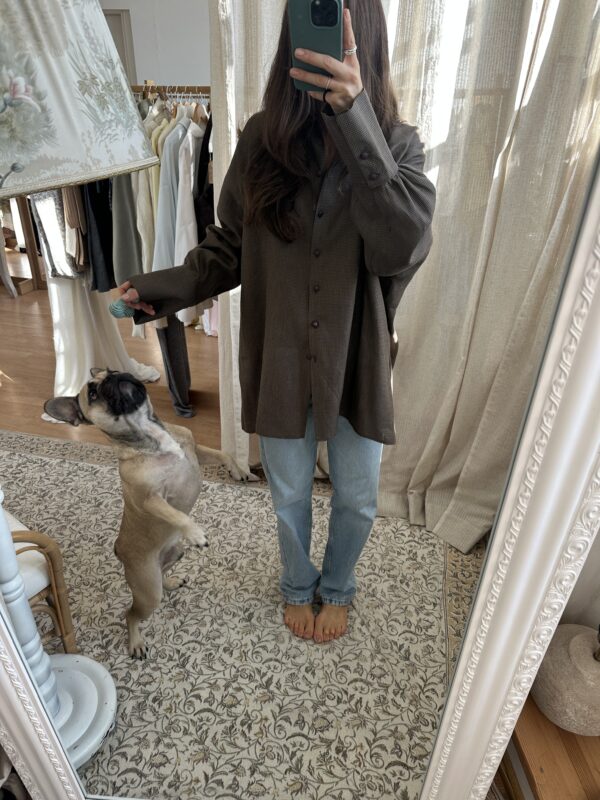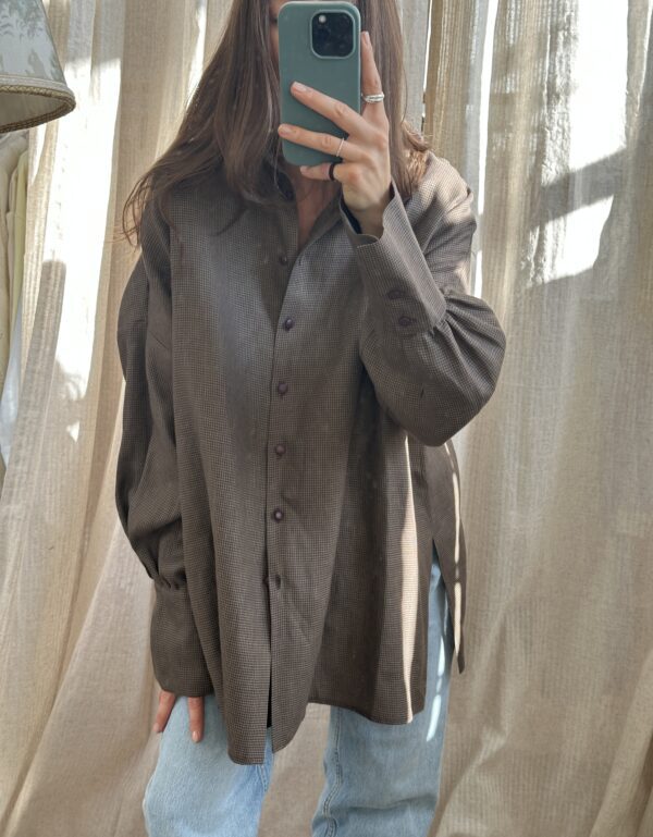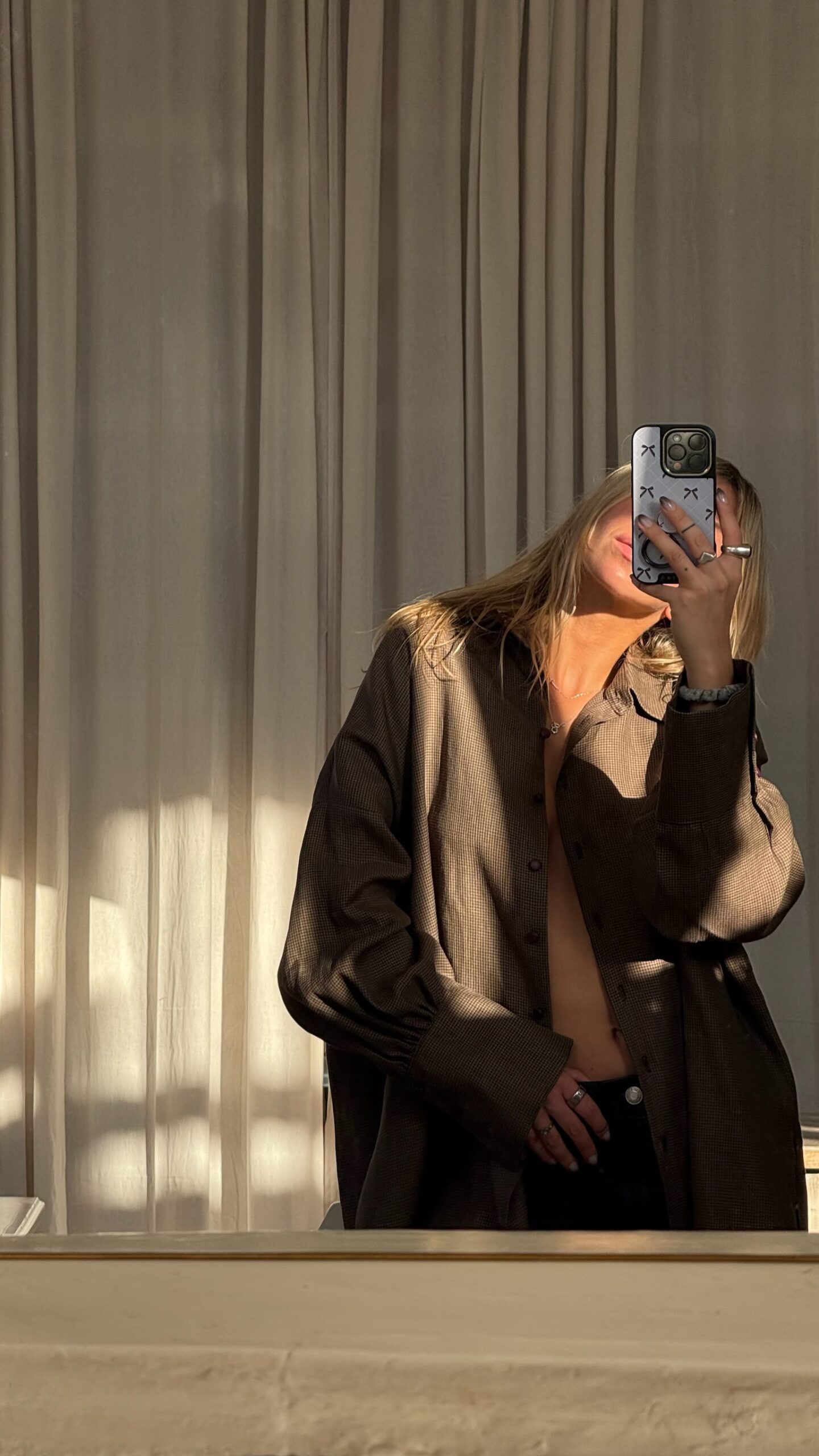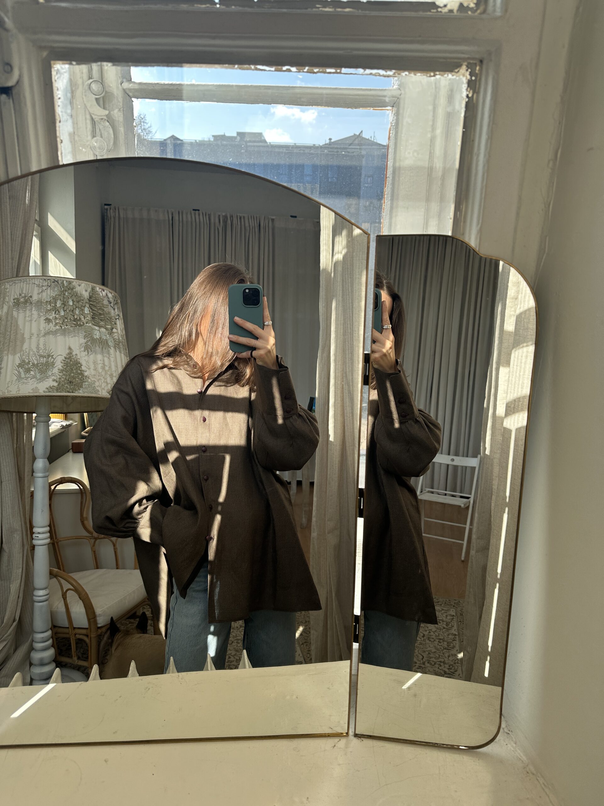 Warm, soft shirts that go beyond basics… This time – in a rich burgundy-brown shade, like autumn light captured in fabric. The fine woven texture adds quiet depth, giving this piece a tactile, lived-in charm. Picture it on slow autumn days or styled for colder evenings in the city. It’s more than a wardrobe staple – it’s a statement. Cut in egzt’s signature oversized fit, with wide cuffs, long sleeves and an easy silhouette – it’s meant to be worn your way. Crafted from a blend of linen, cotton and virgin wool, it feels light yet grounded, soft yet structured. A seasonless piece you’ll reach for again and again.