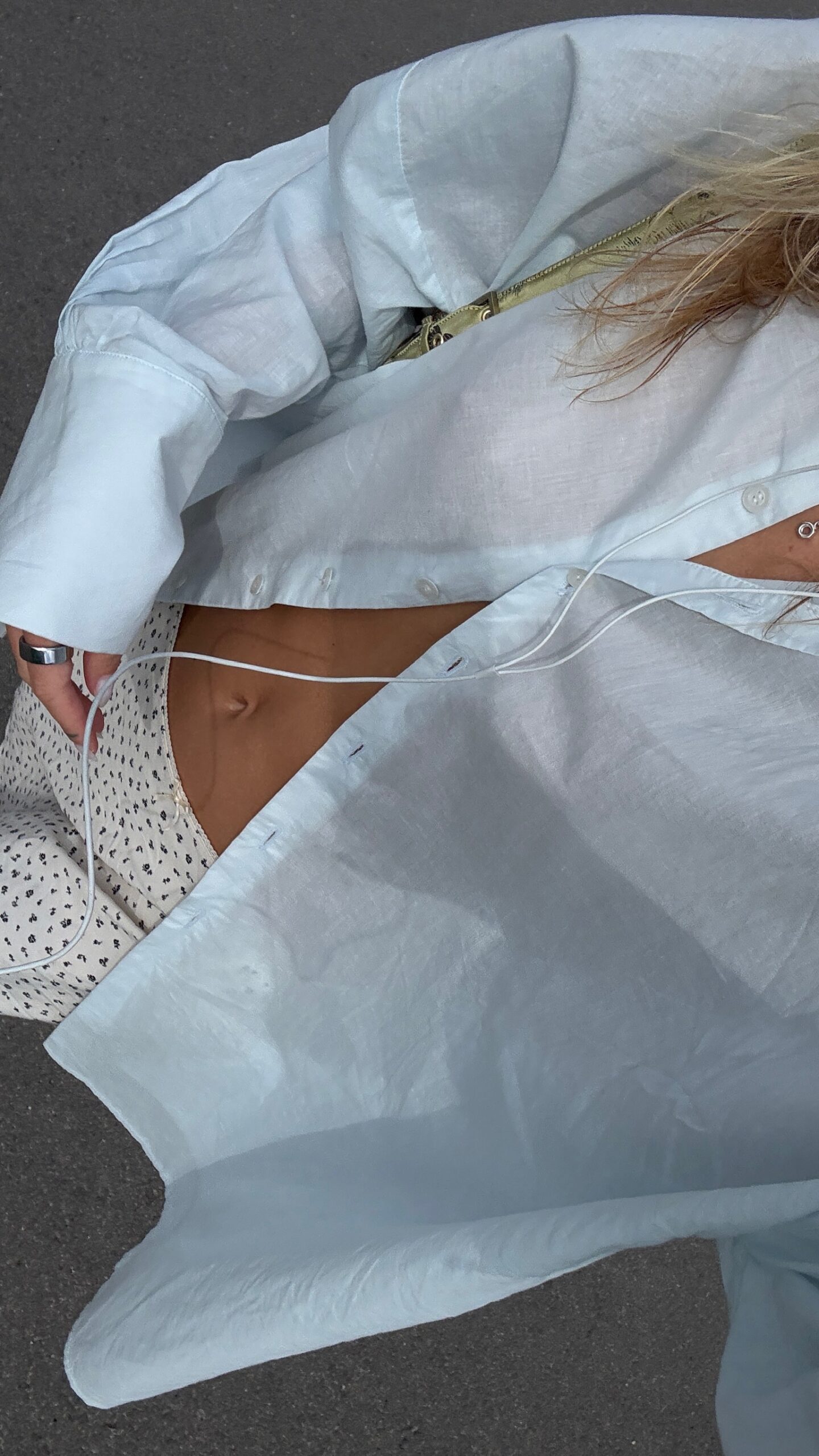 You can confidently call this shirt a timeless egzt classic. The comfortable oversized fit suits all body types, while pure cotton and deep cuffs add a sense of freshness and polish to your look. Made from high-quality material, this shirt is an ideal piece for a capsule wardrobe – layer it with soft knits, wear it buttoned up or open, and pair it with trousers, skirts, or even a bikini.