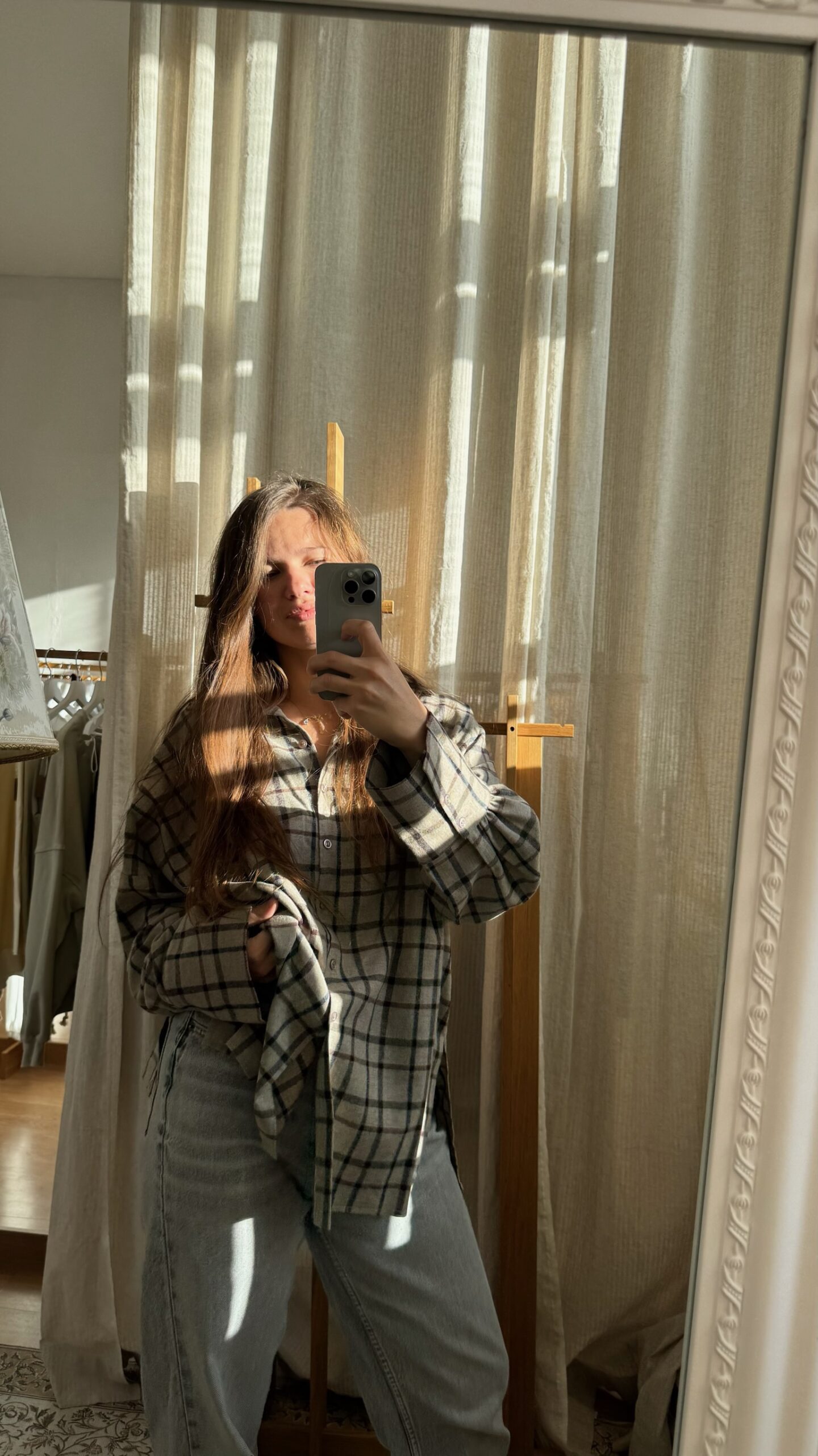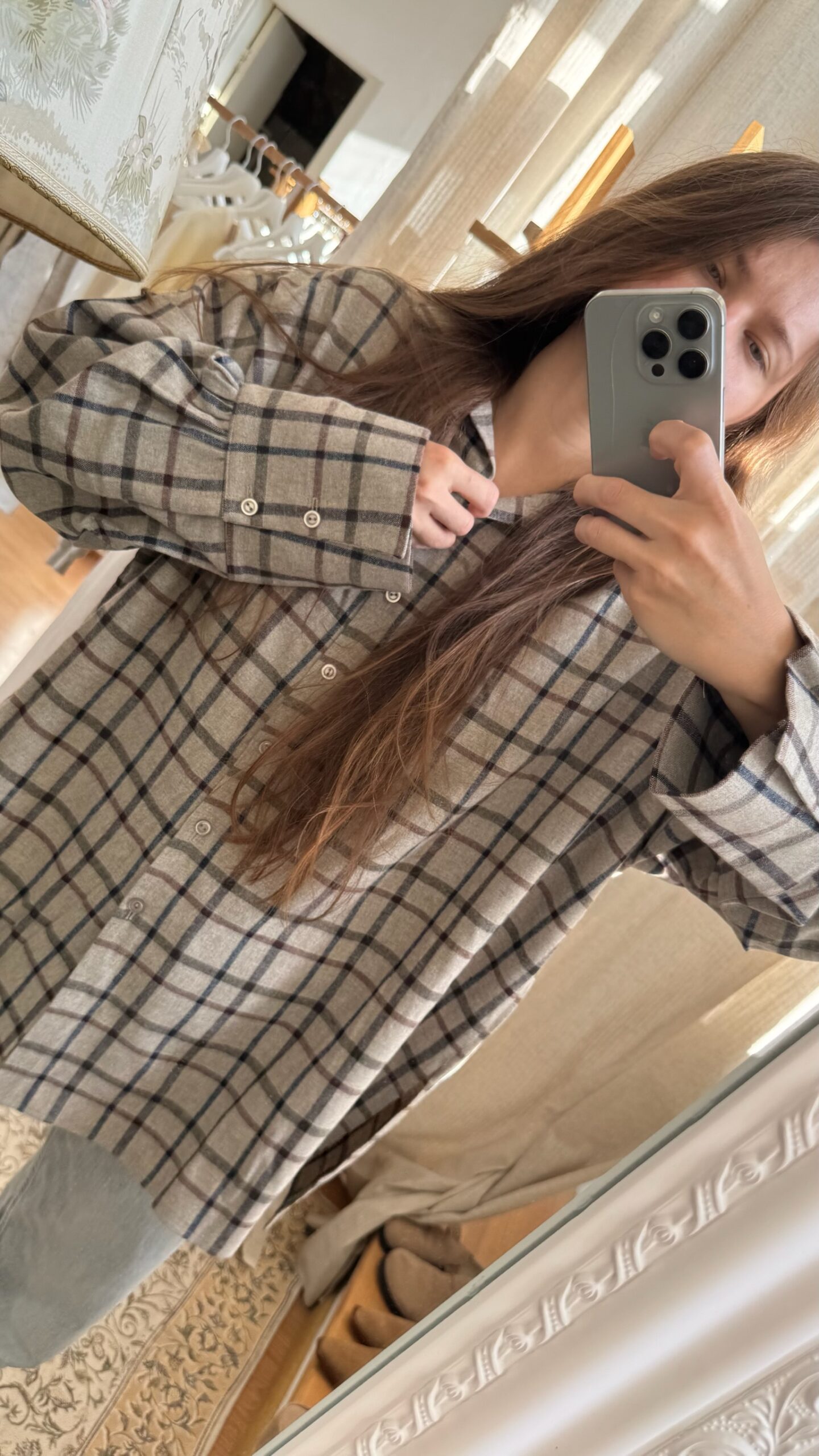 Warm, soft shirts that go beyond basics… This time – in a grounded mix of brown, earthy taupe and soft grey, like autumn comfort translated into fabric. The gentle flannel texture adds quiet warmth and depth, giving this piece a tactile, cozy charm. Picture it on crisp fall days or layered through the colder mornings to come. It’s more than a wardrobe staple – it’s a statement. Cut in egzt’s signature oversized fit, with wide cuffs, long sleeves and an easy silhouette – it’s meant to be worn your way. Crafted from 100% virgin wool, it feels naturally cozy and warm. A seasonless piece you’ll reach for again and again.