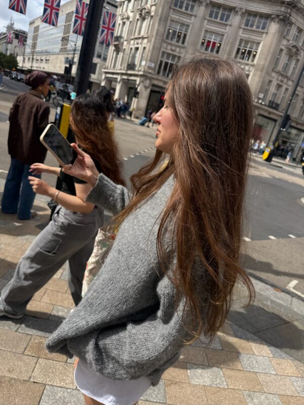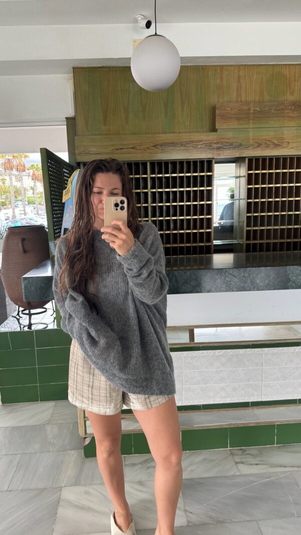 This sweater feels like a calm Sunday morning – soft light, quiet warmth, and endless comfort. Hand-knitted from a luxurious blend of mohair, baby alpaca, and virgin wool, it wraps you in delicate coziness that feels almost weightless. Its chunky knit and relaxed oversized silhouette make it effortlessly elegant, while the soft grey hue pairs beautifully with everything – from jeans or joggers to silk skirts and tailored pieces. Whether you’re spending a slow day at home or heading out for an evening in the city, this sweater moves with you – timeless, cozy, and gracefully understated.