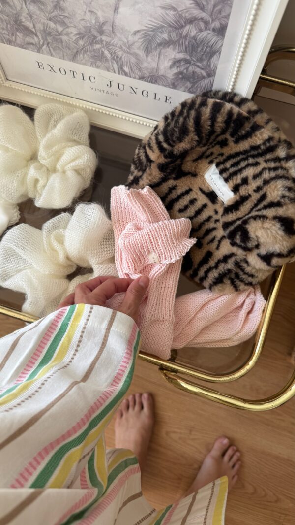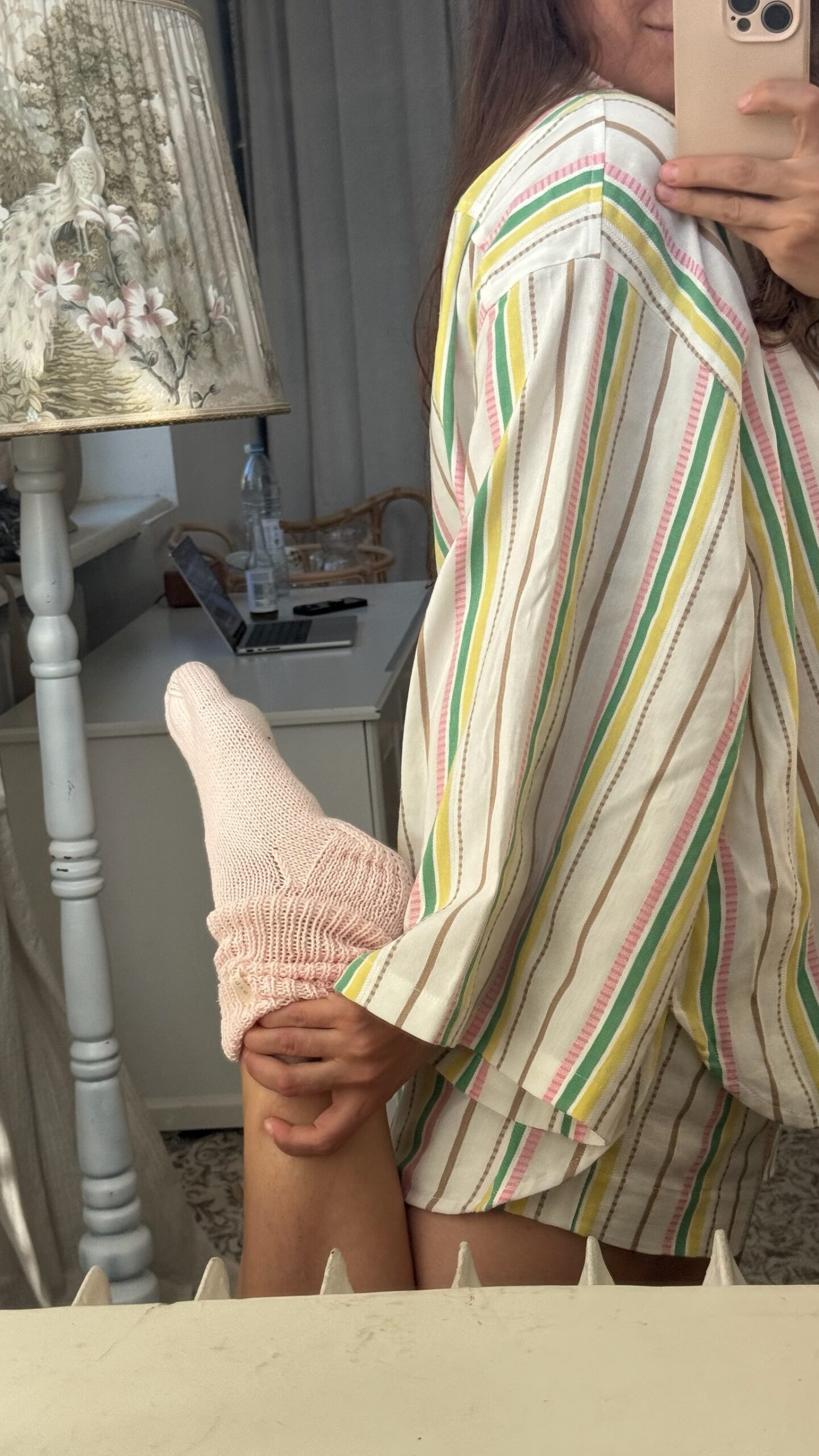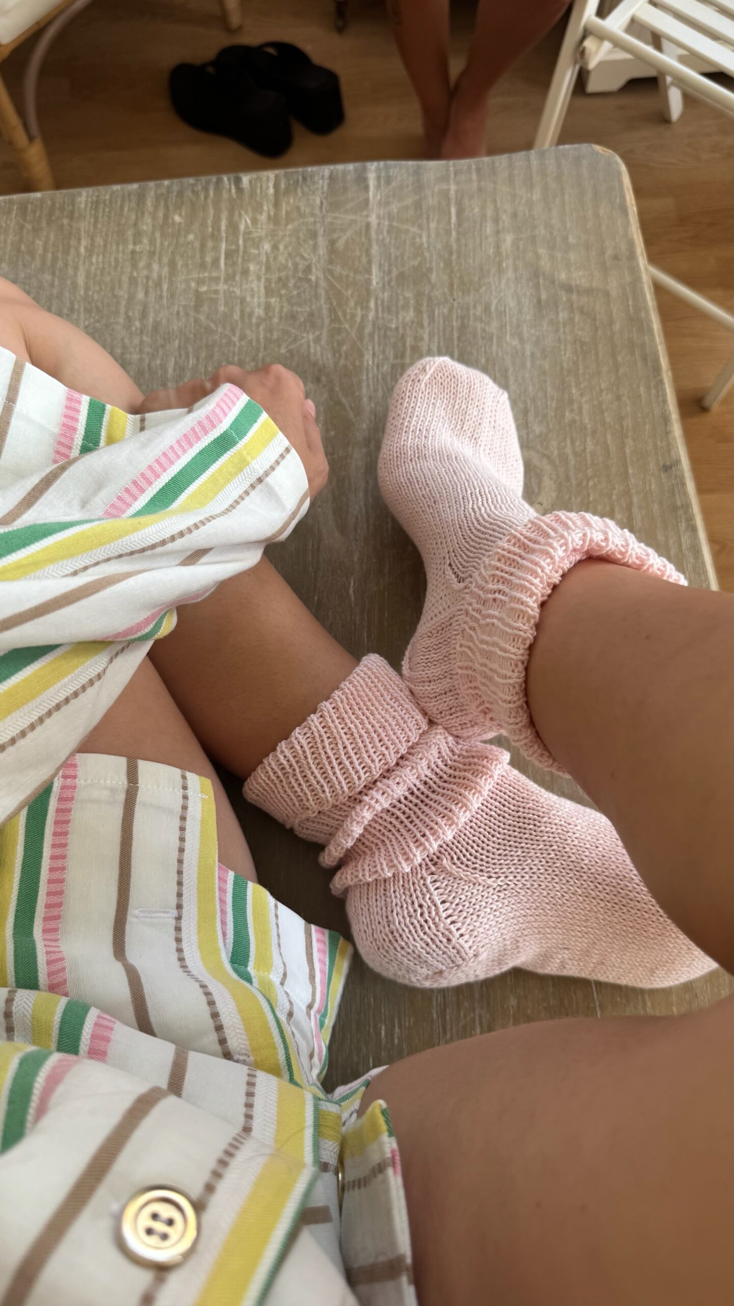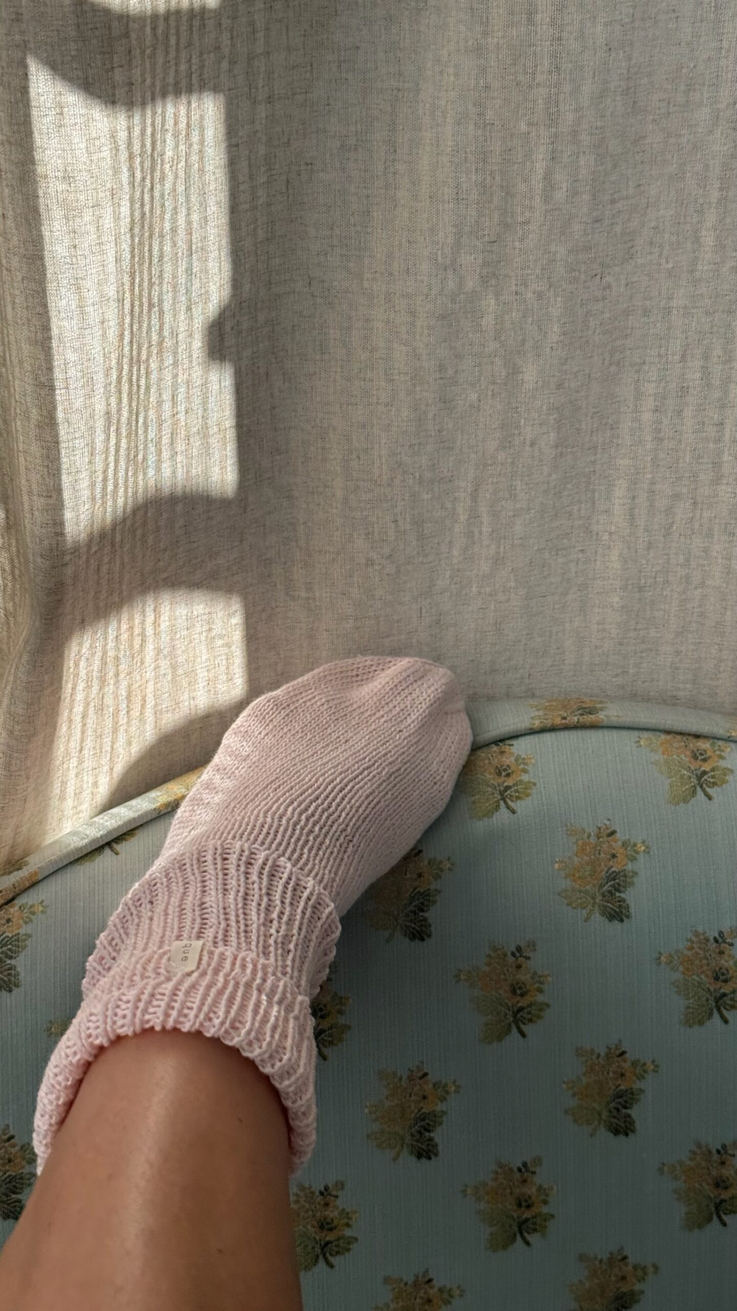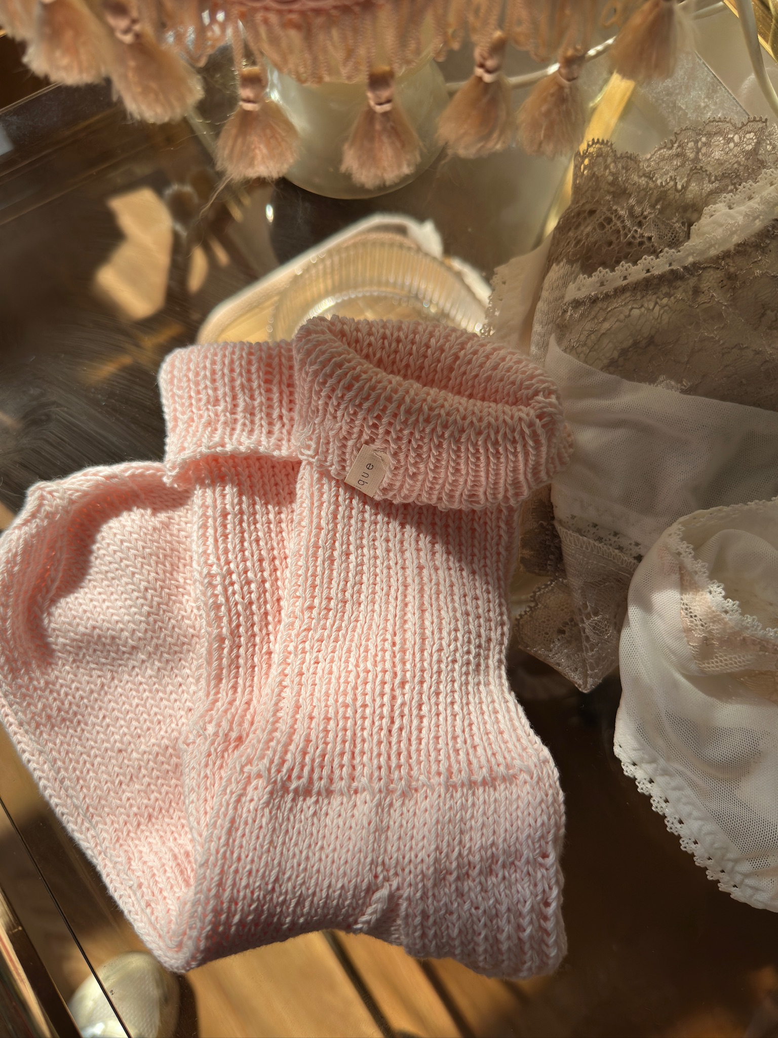 Soft socks in baby pink are made to wrap yourself in comfort on crisp mornings or slip on after a long day for instant ease. Knitted socks will bring a touch of charm whether paired with loungewear at home or styled in a playful city look. Crafted from 100% pure Italian cotton and finished with a subtle egzotique logo ribbon, these socks are a small detail that feels like a quiet luxury.